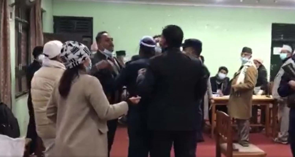 प्रमुख निर्वाचन अधिकृत श्रेष्ठले सांसद लामालाई उक्त तस्बिर हटाउन आग्रह गरेका थिए । त्यसपछि मतदानका क्रममै रहेका माओवादीका अर्का सांसद राजकाजी महर्जन श्रेष्ठसँग भनाभन गर्न पुगेका हुन् ।
